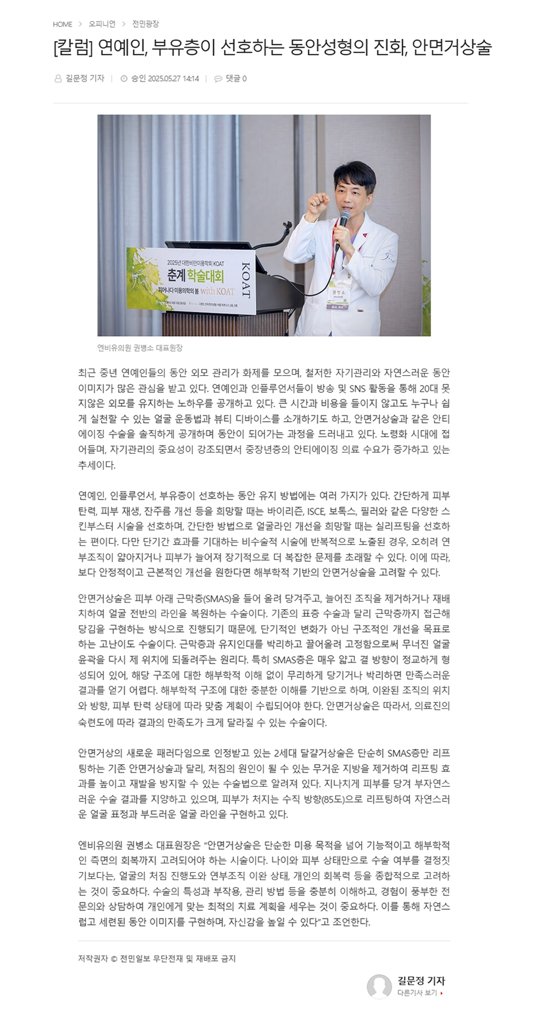 | [칼럼] 연예인, 부유층이 선호하는 동안성형의 진화, 안면거상술 | |||