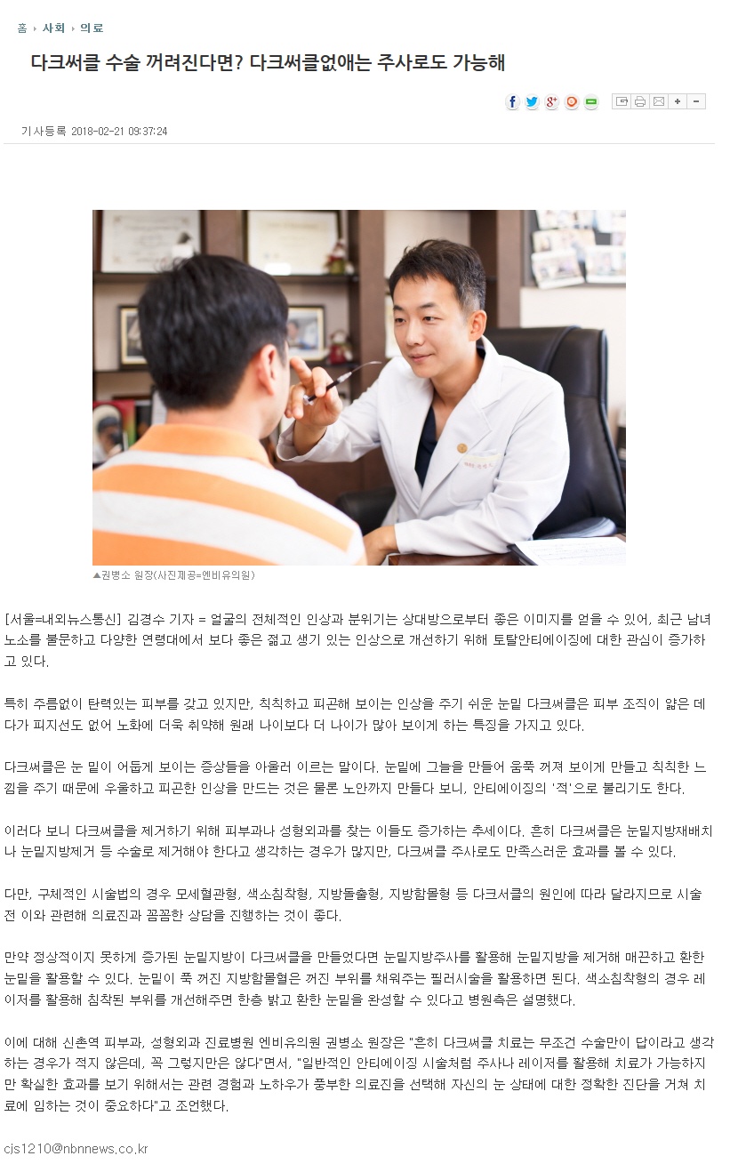 | [내외뉴스통신]다크써클 수술 꺼려진다면? 다크써클없애는 주사로도 가능해 | |||