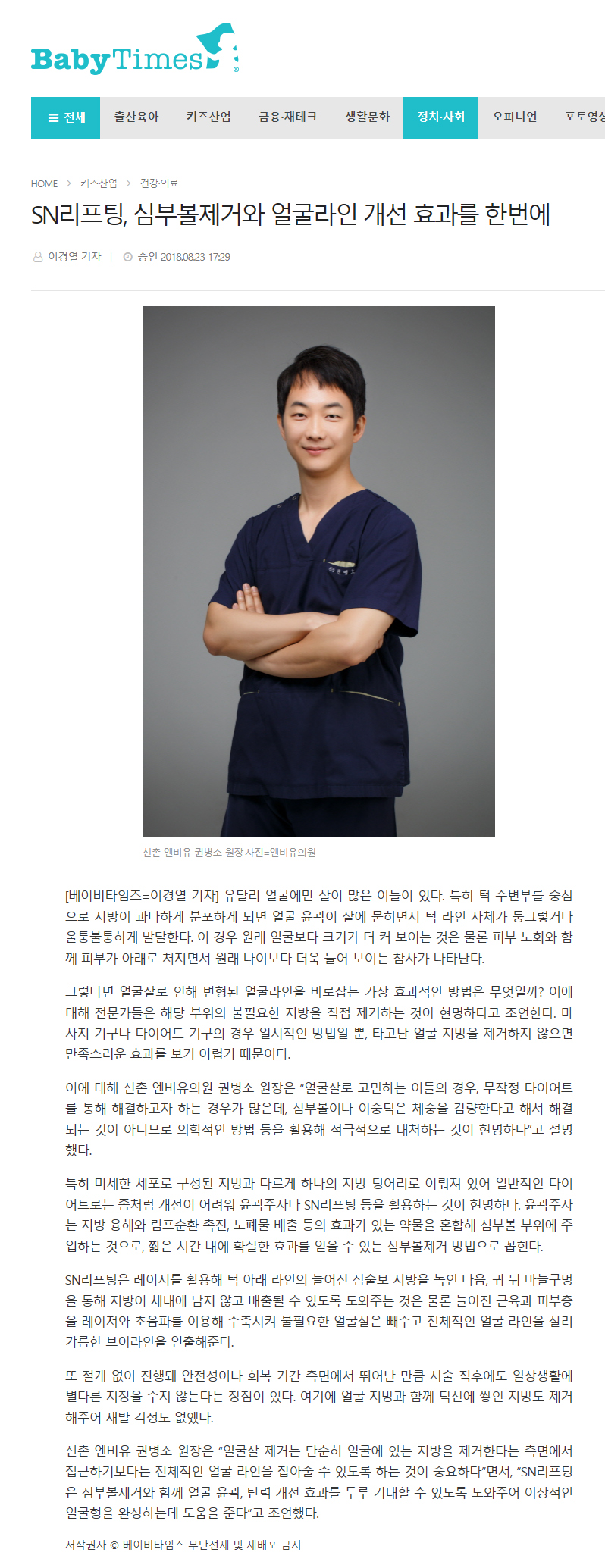 | [베이비타임즈]SN리프팅, 심부볼제거와 얼굴라인 개선 효과를 한번에 | |||
