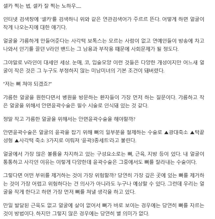 | [경향신문] 작은 얼굴 만들려면 뼈 꼭 깎아야 할까? | |||