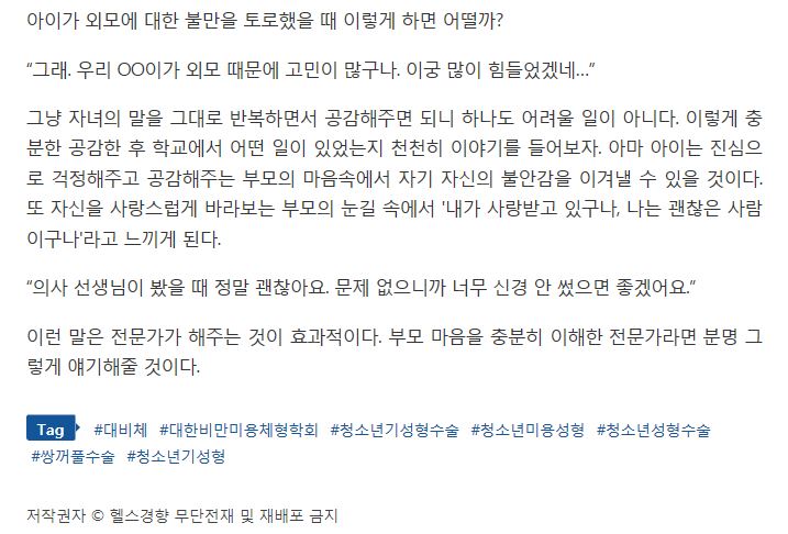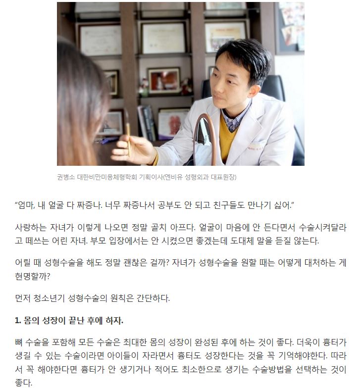 | [헬스경향]대비체와 함께 하는 미남미녀 따라잡기-어린 자녀가 성형수술 원한다면? 이렇게 대처하세요! | |||